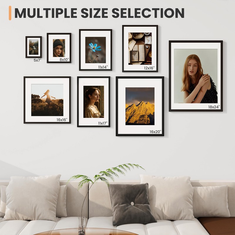 • Versatile Display: The 16x16 frame can display 16x16 photos without a mat or 12x12 photos with a mat, allowing for more layering and enhanced visual appeal. Create a personalized photo gallery that reflects your unique style and captures your special memories.