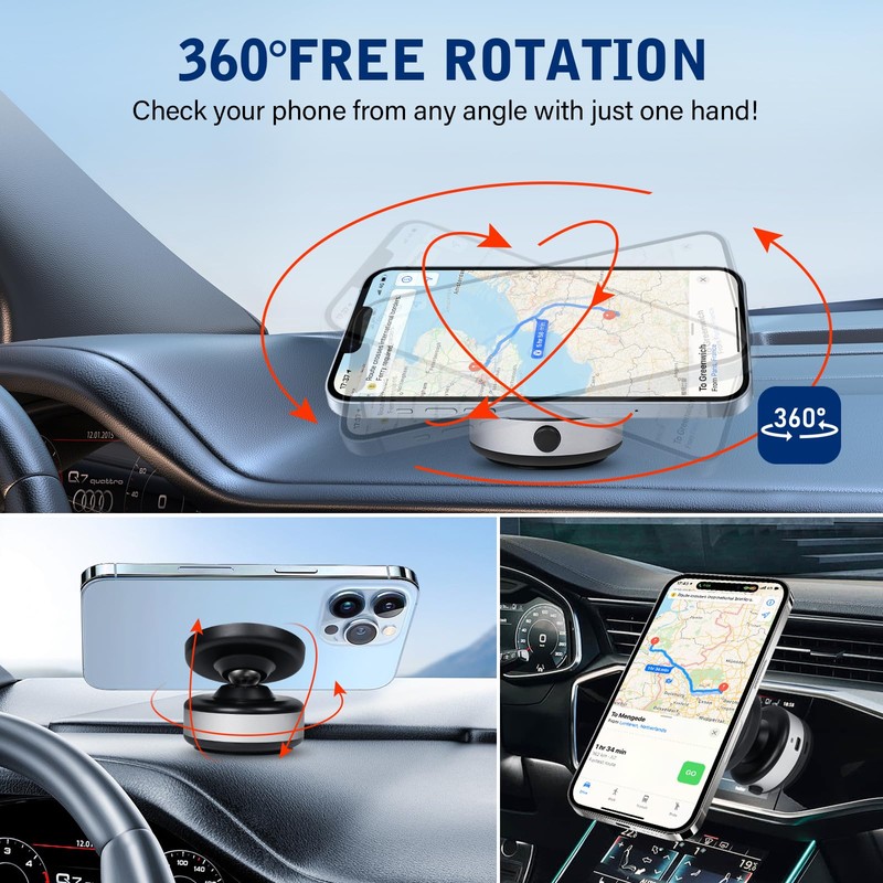 - [Strong Adsorption] Our Suction Magnetic Holder Phone features intelligent vacuum sensing technology paired with the Latest N52 permanent magnets. Ideal for car use, it handles sudden brakes, speed bumps, and diverse road conditions effortlessly, making it an excellent gift choice for parents and friends