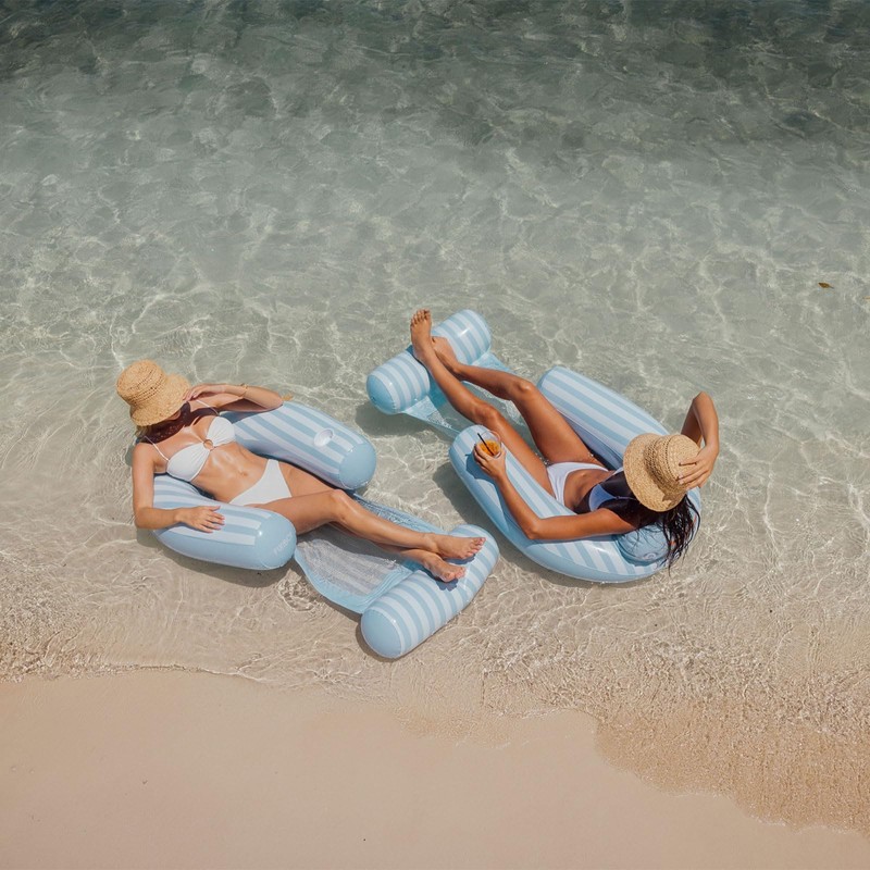 FUNBOY Coastal Stripe Mesh Chair 2-in-1 Water Chair with Cooling Mesh and Water Hammock Inflatable Pool Float.