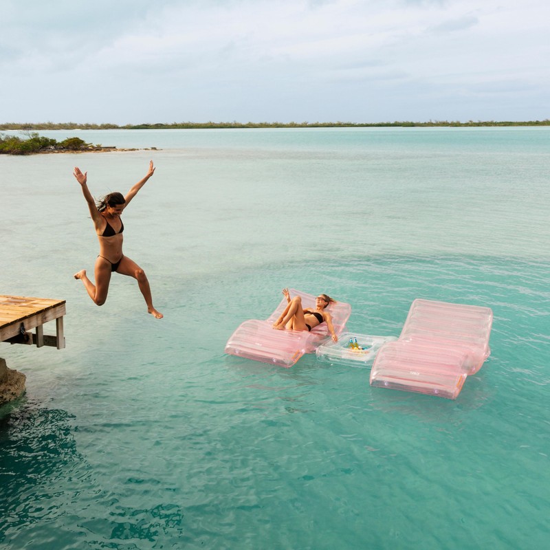 - THE ULTIMATE ORIGINAL FLOATING CHAISE LOUNGER. New Pale Pink Clear Material.