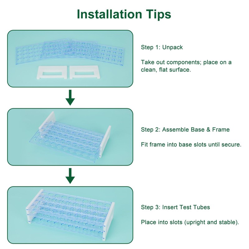 • Made of durable plastic material, the test tube stand provides good acid and alkali resistance as well as corrosion resistance