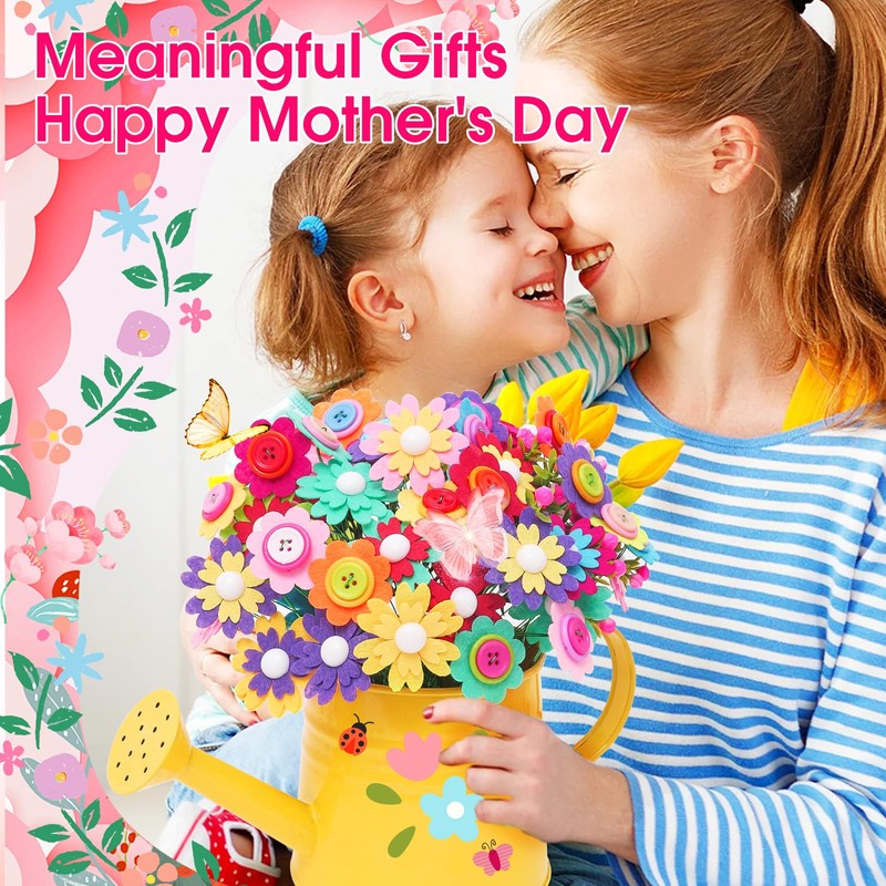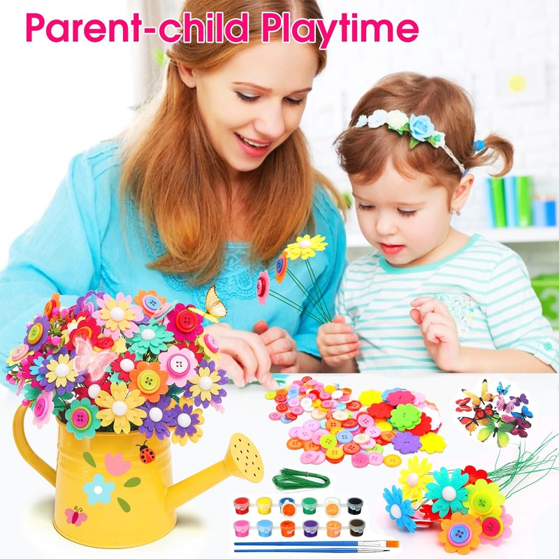 FUNCREVITY Kids Flower Craft Set with Felt Flowers, Buttons and More Flower Vase, Birthday Gift, Funny DIY Set for Girls and Boys, Mother's Day Gift, Bouquet,
