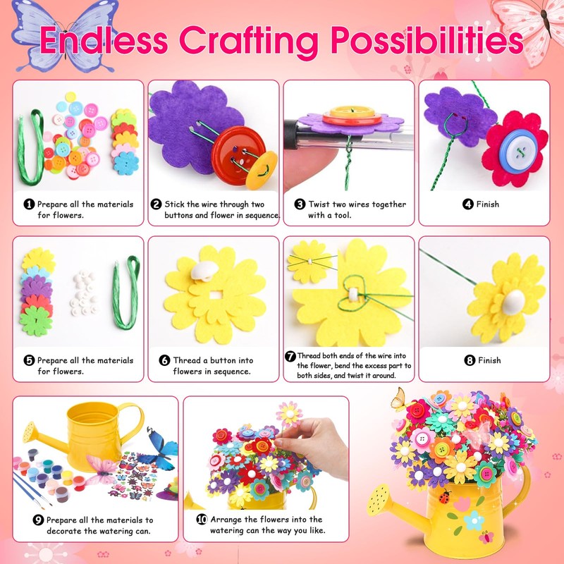 - 🌻PERFECT GIFT CHOICE 🌻: Whether for Easter, Christmas or a birthday, this handmade flower craft set is a great gift for girls aged 6 to 10 years. Children not only fall in love with the pleasure of creating bouquets, but can also give ready-made products as gifts for Mother's Day or teacher's day to convey their feelings.