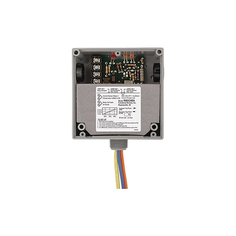 Functional Devices RIBX24BA Current Switch and Relay Combination, 20 Amp SPDT, 24Vac/dc Coil, Adjustable, 0.5-20 Amp, NEMA 1 Housing