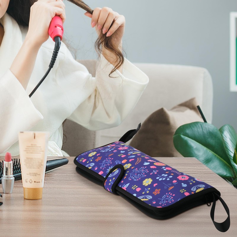 Práctico soporte para rizador: la bolsa organizadora de herramientas para el cabello está hecha de material de neopreno de calidad, cuenta con un buen rendimiento resistente al calor, resistente y confiable para que lo uses durante mucho tiempo; diseño de doble capa, te permite organizar herramientas de cabello caliente tanto como sea posible.