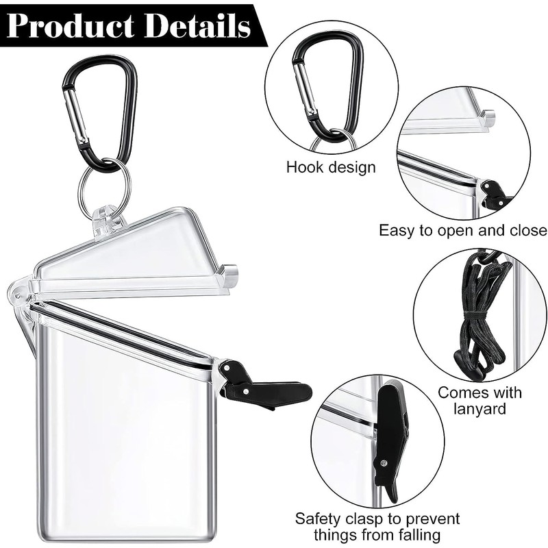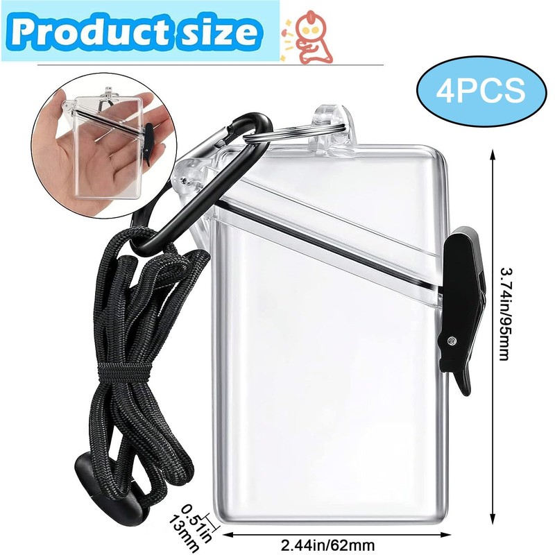 - Material de alta calidad: soporte de identificación transparente para cordón hecho de plástico duro de alta calidad, duradero; con junta tórica de goma, buen sellado puede evitar fugas de agua, mantener los artículos secos, impermeables y a prueba de polvo, se puede utilizar de forma segura en el agua.