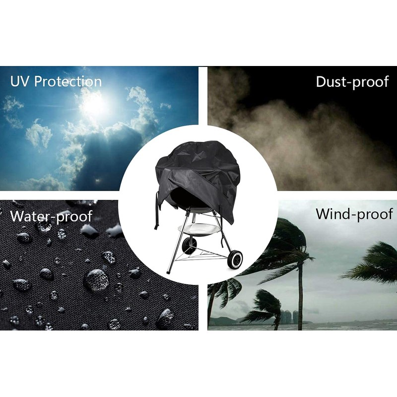 - Fácil de usar: un asa en la parte superior para fácil de poner y quitar. Tres correas de velcro en la parte inferior aseguran la cubierta de la parrilla para evitar que el viento salga.