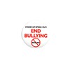 - White round button pin - has the words "Stand Up. Speak Out. End Bullying"