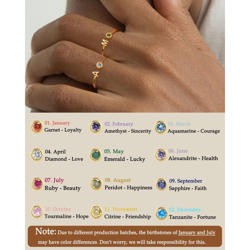 - 12 MONTH BIRTHDAY GIFT: The fashion cute ring was designed with initials A-Z and 12 colors of birthstone. It’s a perfect gift for mom, wife, daughter, bride, bridesmaid, best friend or yourself. Send this dainty ring of her exclusive initial and birthstone to express your love and sincerest wishes