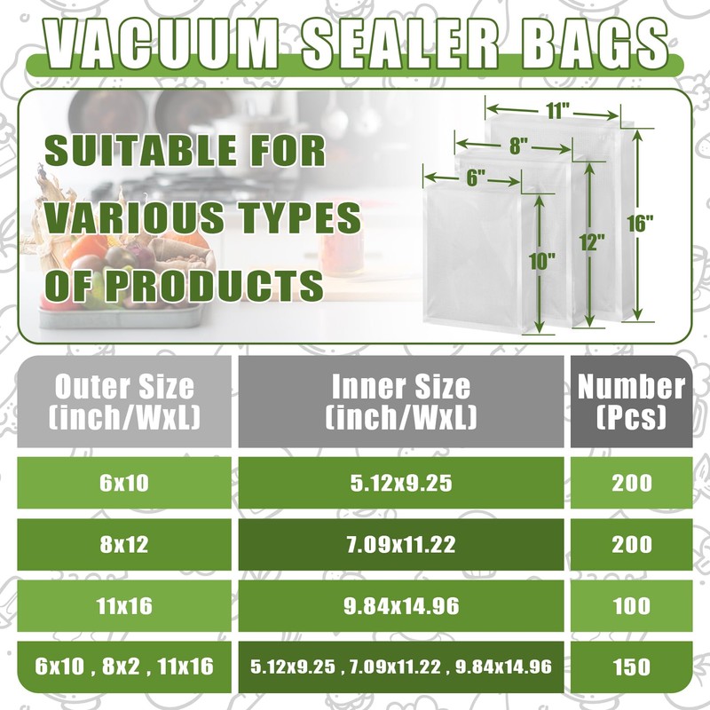 - 【Vacuum Bags Suitable for All Types】-No matter what brand or model of vacuum sealer you have, our food storage bags are designed to work perfectly with it! You can pick from a variety of pre-cut sizes or easily customize the length using the built-in tear lines. These bags are compatible with all standard machines, making them hassle-free and reliable for every use.