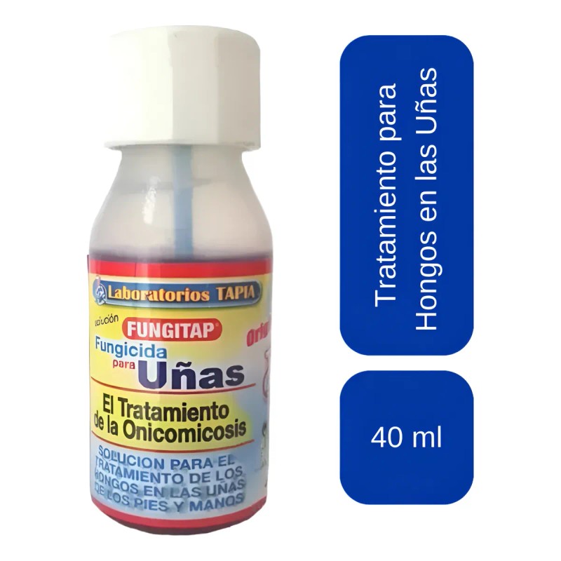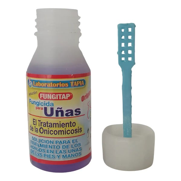 TRATAMIENTO EFICAZ Y EFECTIVO CONTRA LA ONICOMICOSIS U HONGOS EN LAS UÑAS. Elimina hongos en uñas afectadas, negras o amarillas. La fórmula de Fungitap penetra en la uña, ayudando a restaurar su color y salud. La APLICACIÓN es RÁPIDA, PRÁCTICA y con RESULTADOS VISIBLES DESPUES DE 2 SEMANAS. Solamente pon 2 gotas en la mañana y 2 en la noche en la uña afectada. Ideal para uso diario hasta lograr una recuperación completa.