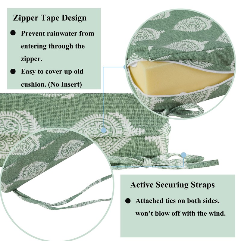 • 【Active Ties】-Two rear reinforced ties make it easy to attach cushions to furniture and keep them neatly and safely in place, so it won’t blow off with the wind. PLEASE DON'T LEAVE THE CUSHION IN THE RAINSTORM.