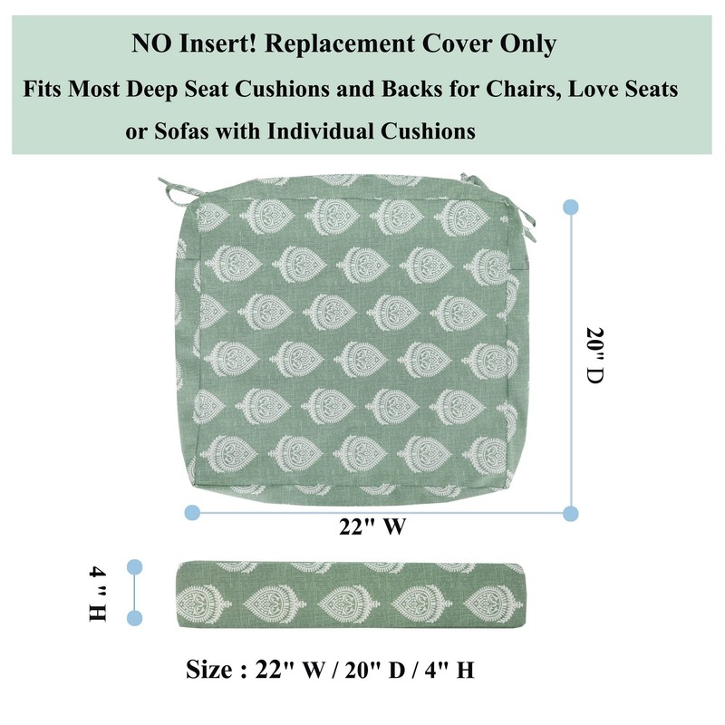 • 【Package Included】- Comes with Set of 2 (two) Cushion Covers Replacement. Size: 22"L x 20"W x 4"Thick. Covers only, insert not included. Please allow 1-2cm deviation because of manual cutting and sewing.