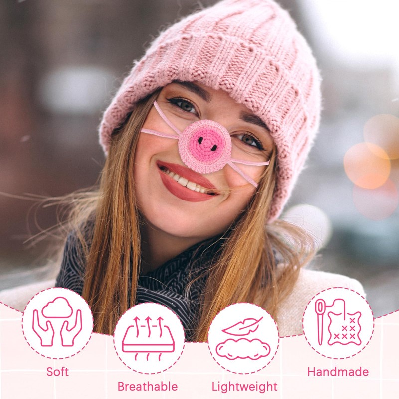 FunisFun Crochet Nose Warmer for Winter Cute Animal Shape Nose Cover for Men Women Cold Weather Outdoor Activities Prank Gag Gift (Pink)