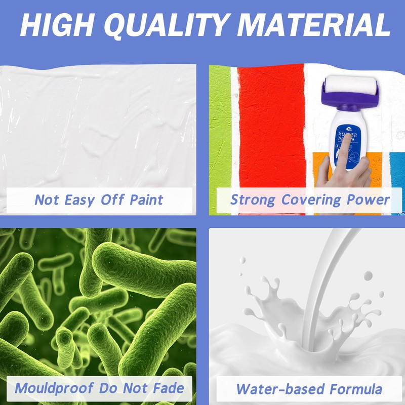- Strong Covering Power: This roller brush is designed to take advantage of the high viscosity of the paint, allowing it to cover all types of stains, shoe marks, graffiti, and other blemishes. Its effect is obvious and long-lasting, making your walls look like new! It dries quickly, allowing you to complete your repair work quickly and save time