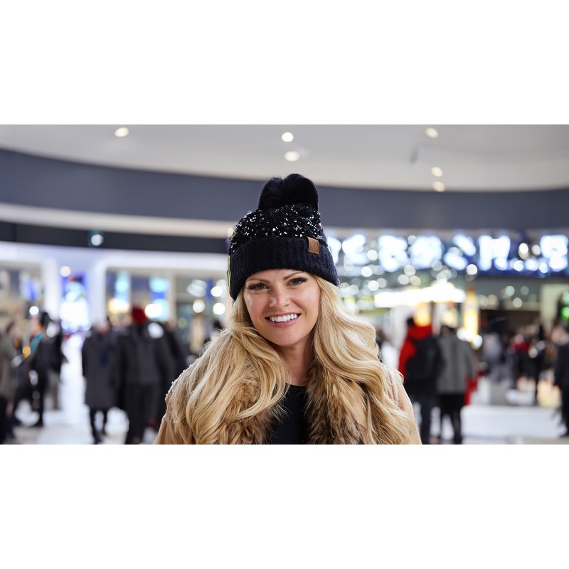 Funky Junque Adult Sequin Pom Beanie - Chunky Sequin - Black