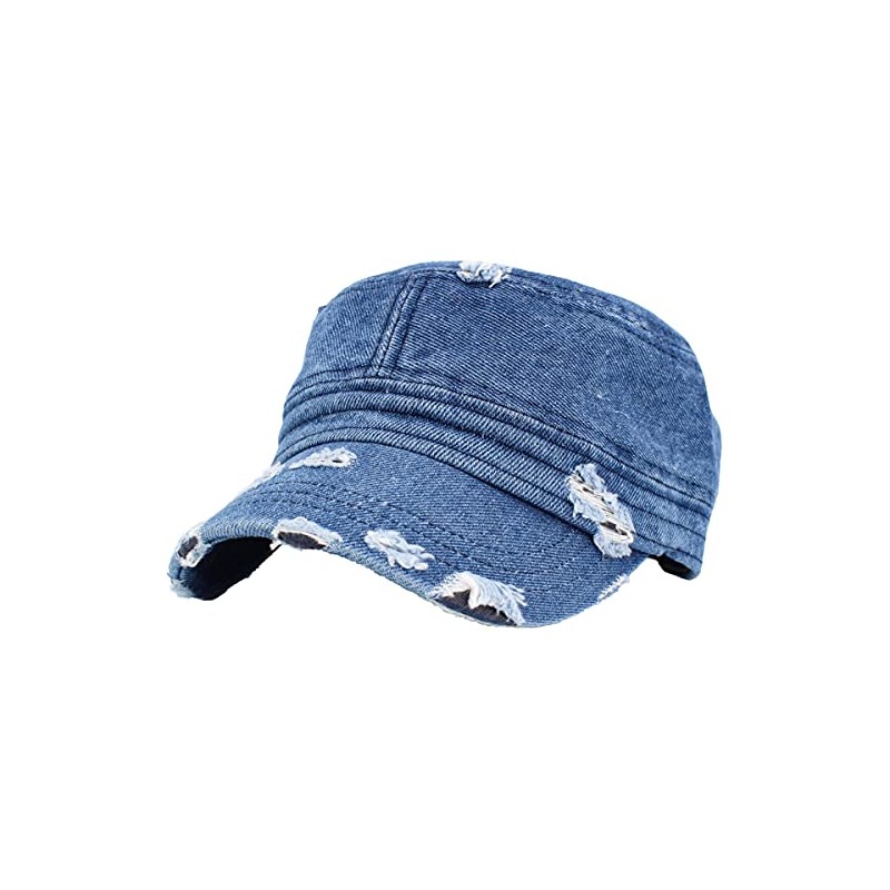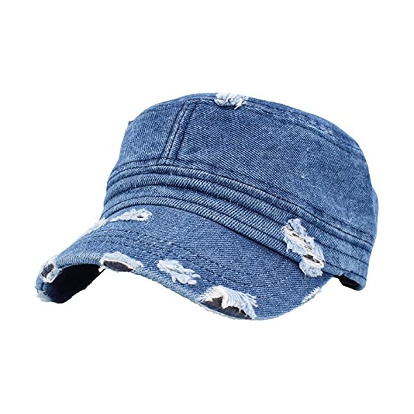 Funky Junque Distressed Military Style Army Cadet Hat - Dark Denim