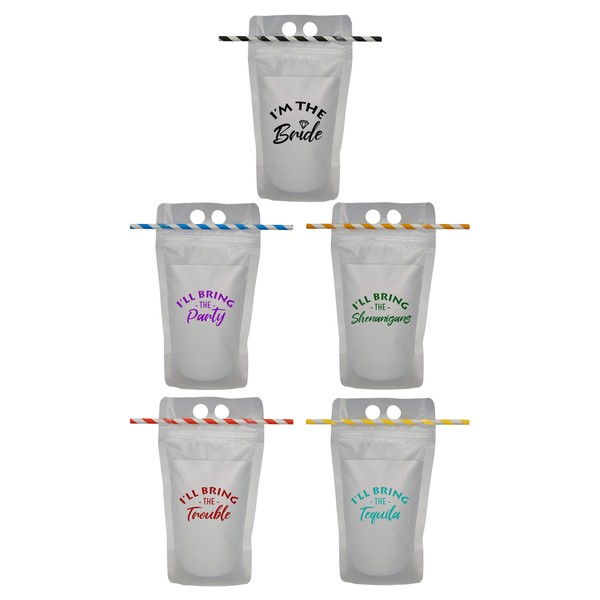 Funky Junque Drink Pouch Bundle with Straw - IT Bride, IBT Party, Shenanigans, Trouble, Tequila