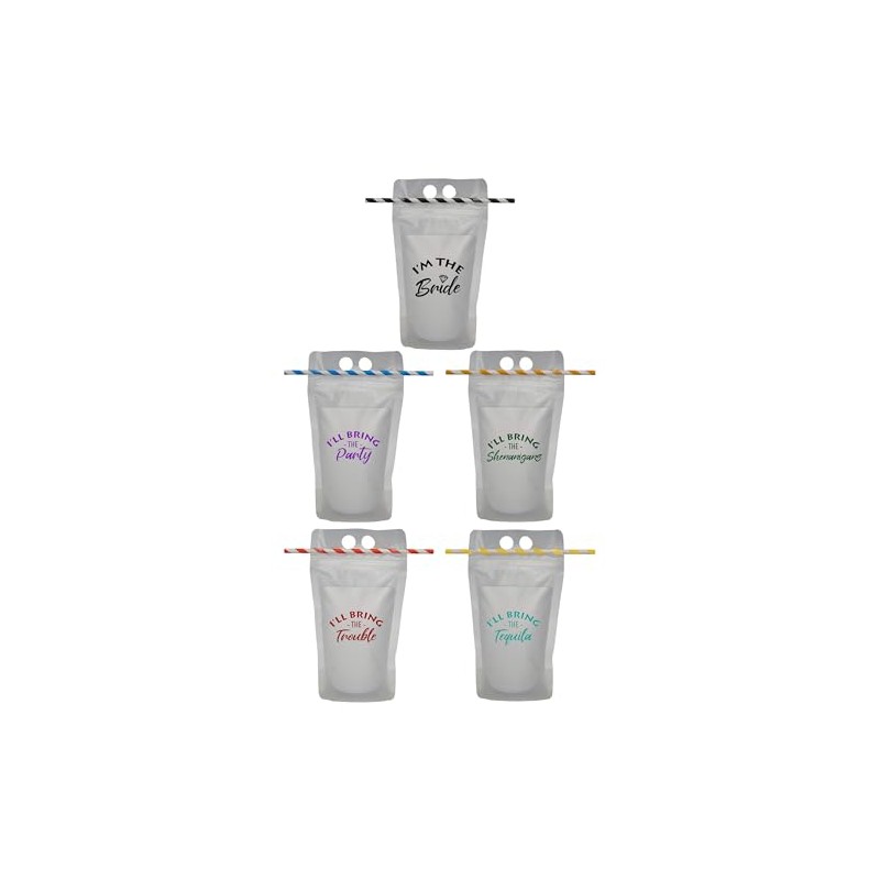 - GREAT QUALITY: Our pouches are made from high-quality, durable Polycarbonate (PC) plastic material that’s designed to keep your drinks cold and refreshing for hours. The included straws make sipping easy and mess-free. This can be especially important when enjoying cocktails or other drinks that can be prone to spills or leaks. These bachelorette decorations are the perfect accessories for any bach party, birthday, bridal shower or girls' night out!