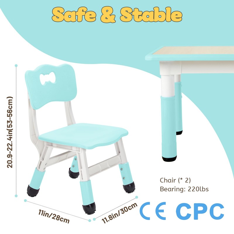 - 【CPC & CE certified, Focus on Every Detail】FUNLIO toddler chairs are CPC and CE certified. The items are well made and quite smooth, without any burrs. Rounded corners keep the child safe. A curved seat back is good for a child's spine while sitting. Adjustable non-slip chair feet and the 220lb weight-bearing capacity help it stand stable on the ground.