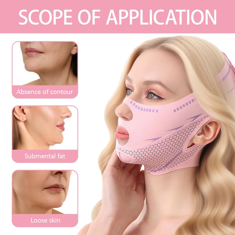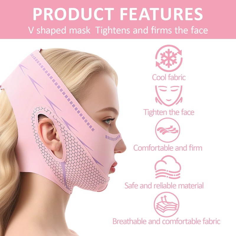 - V Shaped Face Lift: This product creates a V shaped lift for the chin and jawline, the V Shaped Face Lift Chin Mask reduces double chins and creates a more defined, three dimensional facial contour