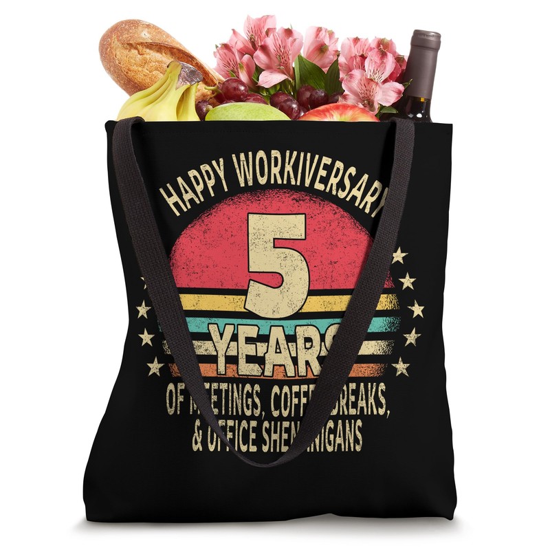 Funny 5th Work Anniversary - Happy Workiversary 5 Years Tote Bag