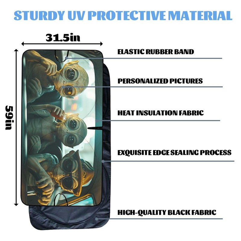 Funny Alien Car Windshield Sunshade Folding Cute Martiansal Monster Heatshiel...