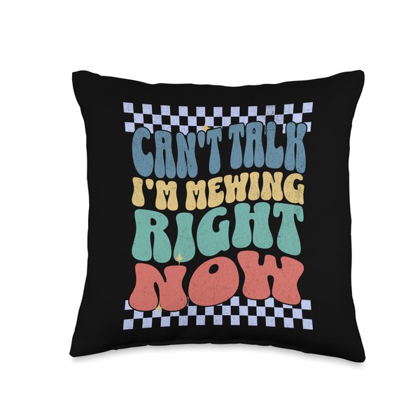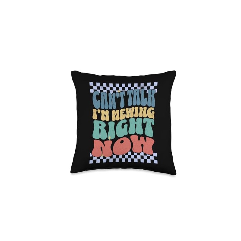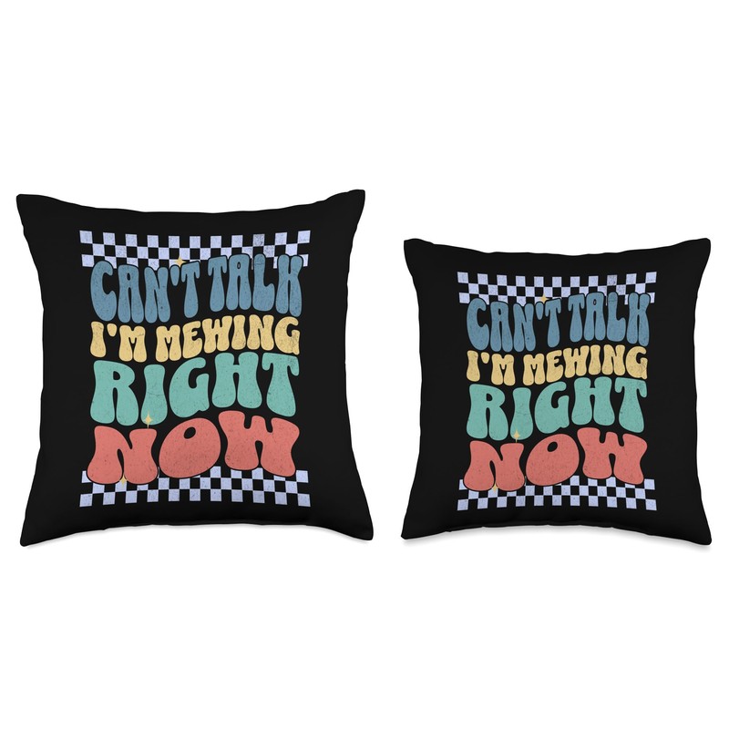 Funny Can't Talk I'm Mewing Right Now Ironic Meme Brainrot Throw Pillow