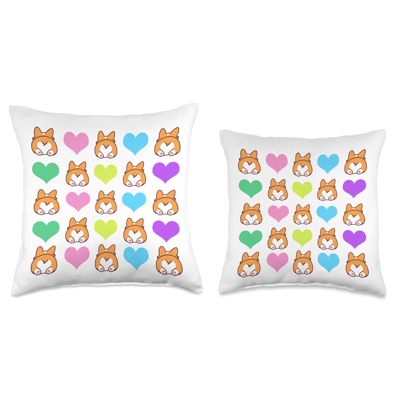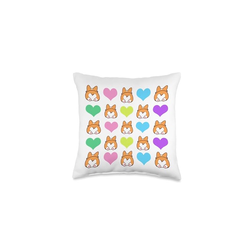 Funny Corgi Butt Pattern with Cute Hearts Throw Pillow