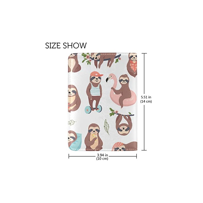 Funny Cute Sloth Set Do Different Actions On White Genuine Leather Travel Passport Covers, Microfiber Leather Travel Wallet Holder Case Protector for Women and Men