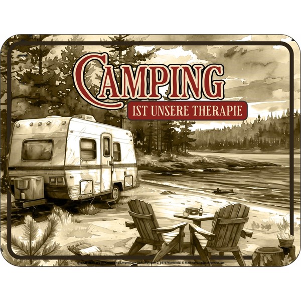 Funny decorative tin sign: Camping ist Therapie
