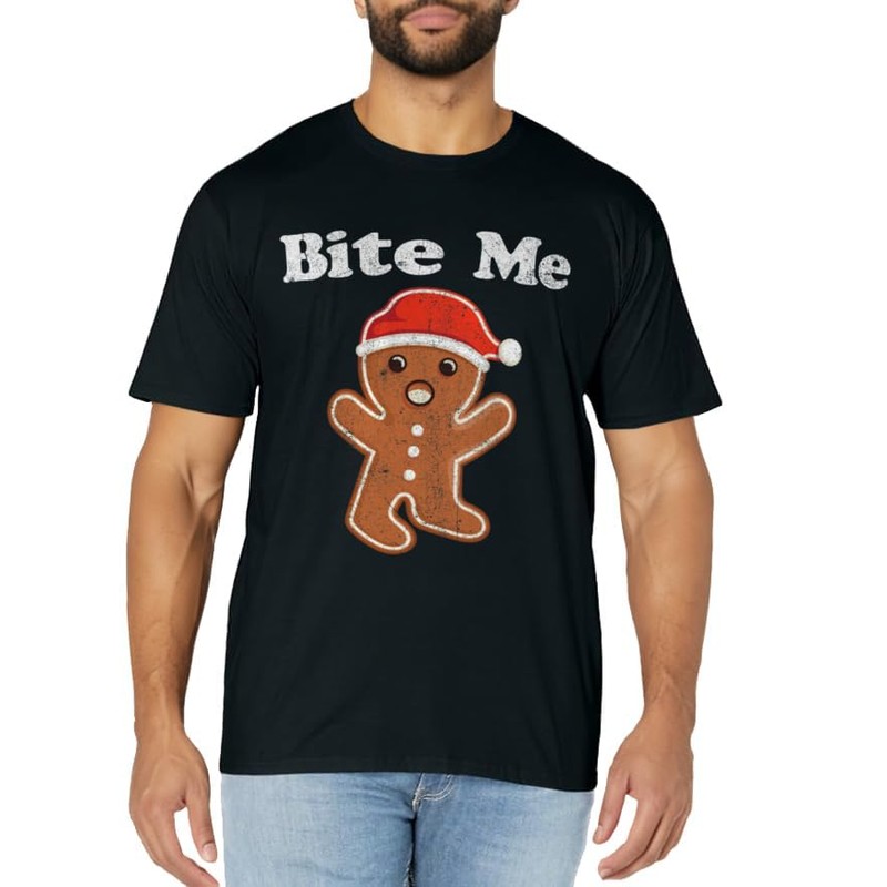 • This cute funny Gingerbread Man Christmas top makes a great Gift Idea for any women men or kid who loves baking Christmas cookies. Grab this cute Gingerbread Man Bite Me Christmas holiday apparel today!