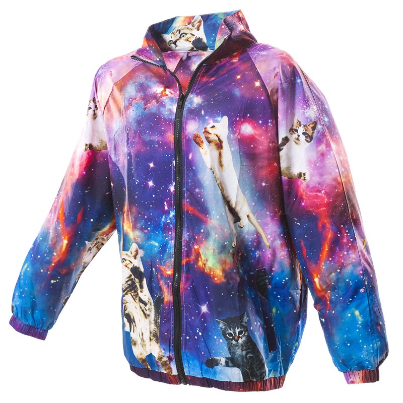 Funny Guy Mugs Space Cats 80s & 90s Retro Neon Windbreaker, X-Large