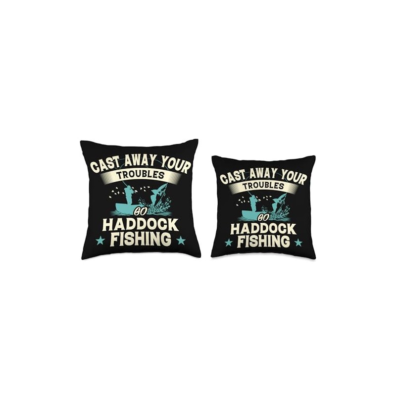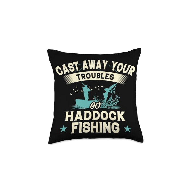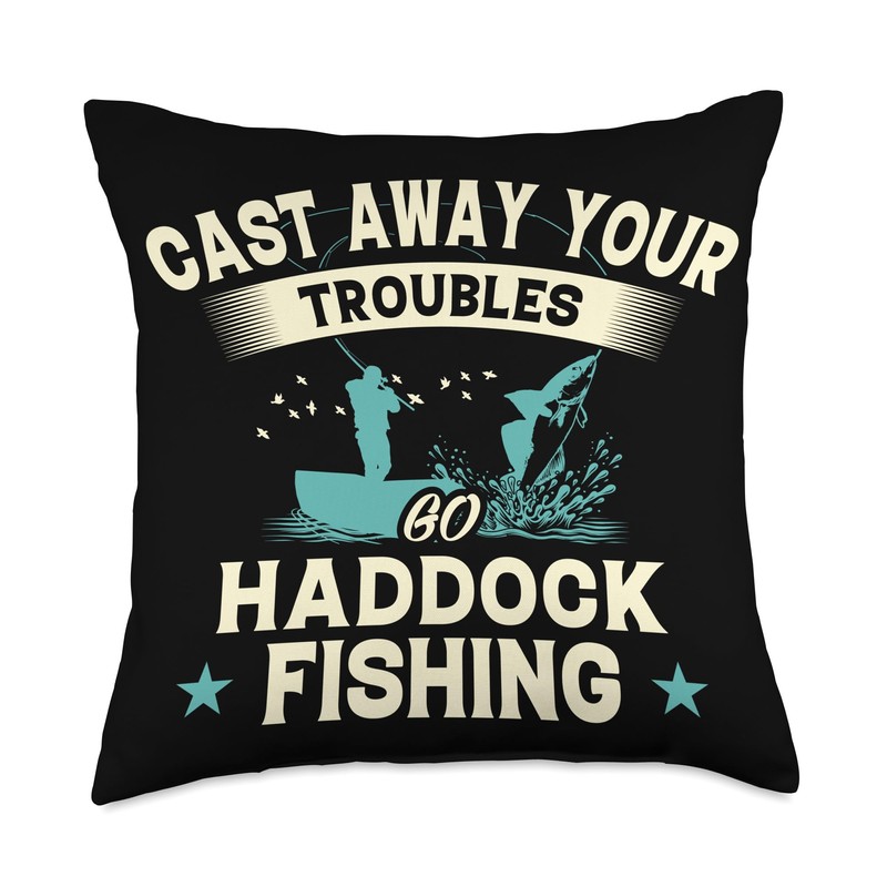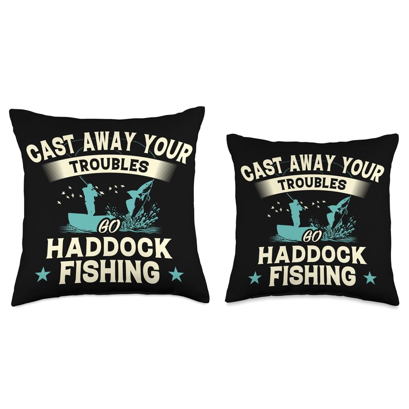 Funny Haddock Fishing Gift for Men & Women Cast Away Your Troubles Go Fishing-Fisherman Haddock Throw Pillow, 18x18, Multicolor