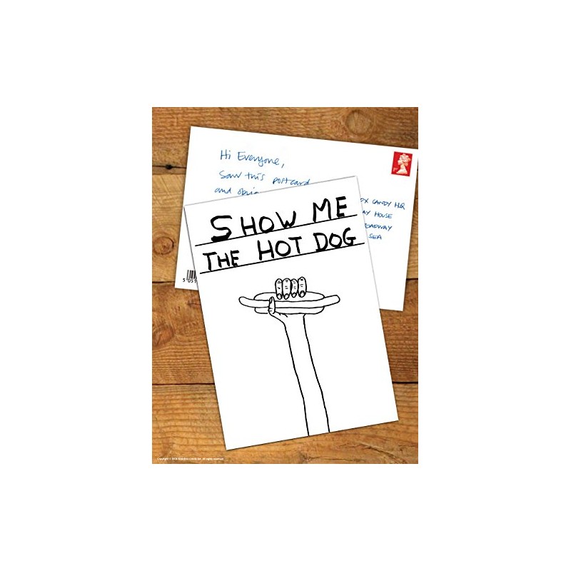 Funny Humorous 'David Shrigley Show Me Hot Dog' Novelty Postcard