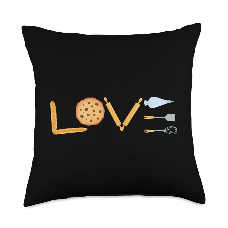 Funny Love Bread Cookie Rolling Pin Baking Utensils Baker Throw Pillow
