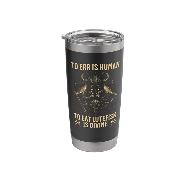 - This funny design features the quote To err is human, to eat Lutefisk is divine would be ideal for that Norwegian or Swedish family member or friend in your life who loves lutefisk, lefse and flies the Norway flag. Click on our brand for more designs.