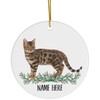 Funny Personalized Name Bengal Cat Kitten Brown Gifts 2024 Christmas Tree Ornaments Circle Ceramic