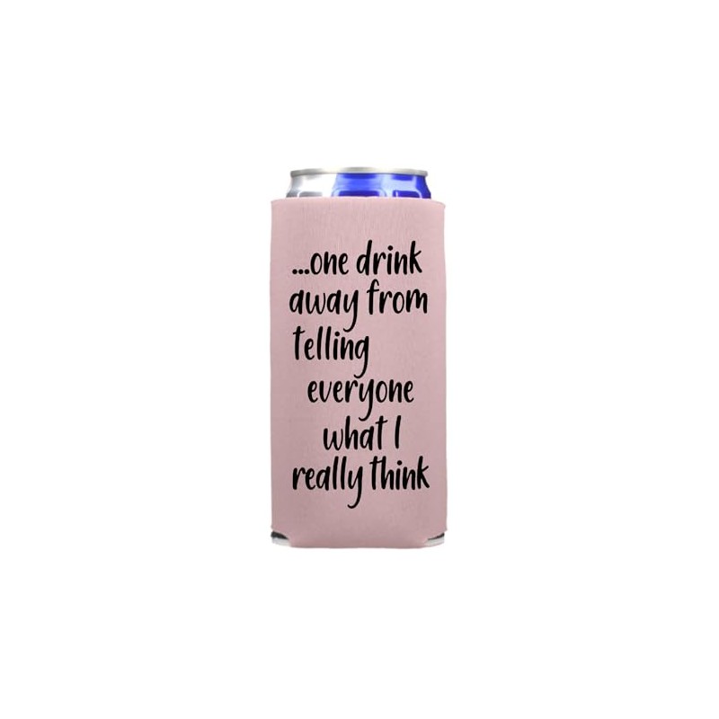 Funny Slim Can Cooler - One Drink Away From Telling Everyone What I Really Think - Funny Spiked Seltzer Drink Accessory Gift Ideas - Skinny Coolie (Blush)