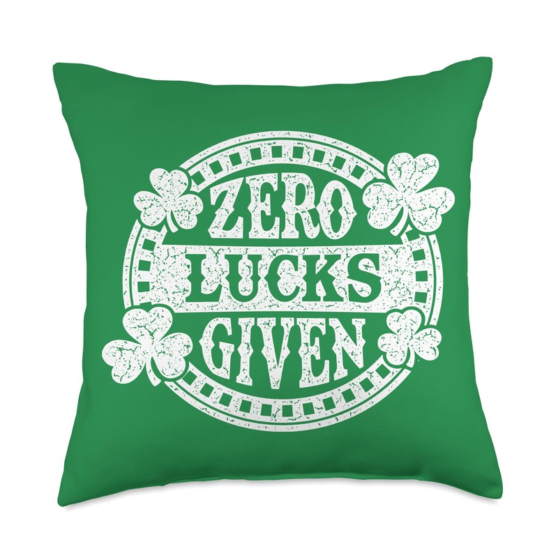 Funny St. Patrick's Day, Irish, Shamrock, Zero Lucks Given Throw Pillow