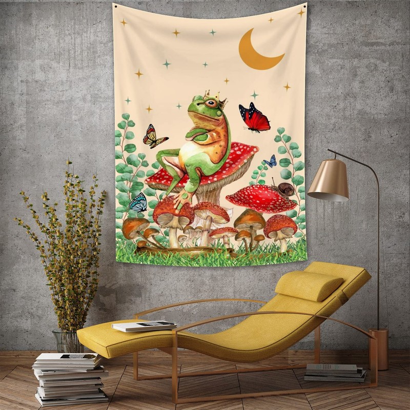 Funny Tapestry Boho Mushroom Tapestry Frog Aesthetic Moon Stars Tapestry Wall Hanging for Bedroom Eucalyptus Leaf Green Plant Butterfly Floral Botanical Tapestries Home Decor Living Room 40x60 Inch
