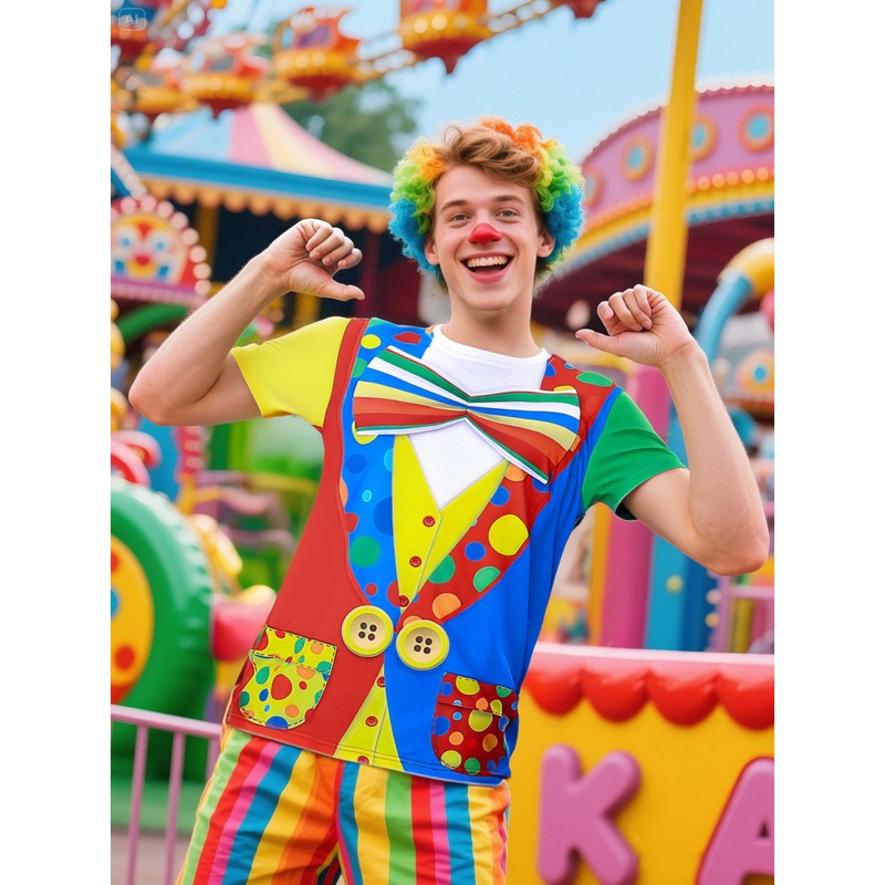 Funny World Men's Clown Costume T-Shirts, X-Large, Multicoloured