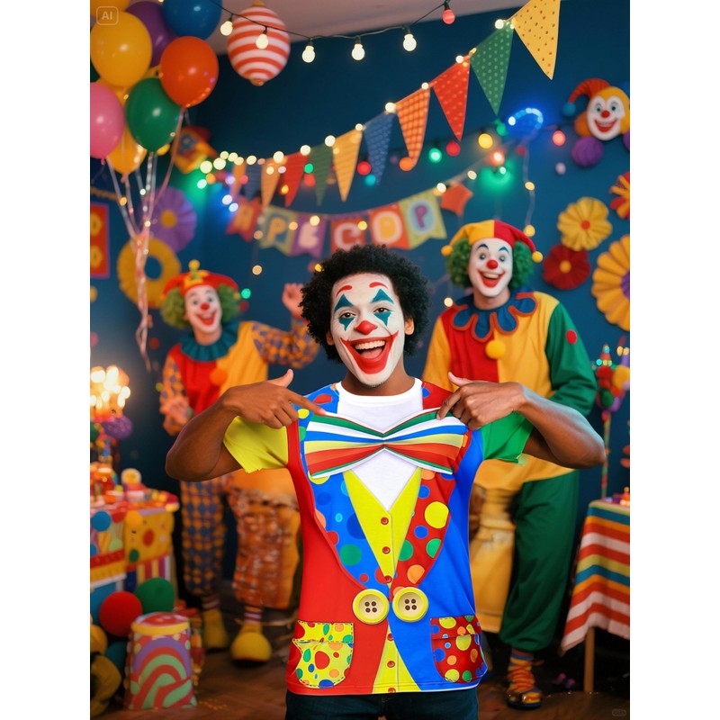 - Soft and stretchy material. Colourful Clown costume tee shirt design