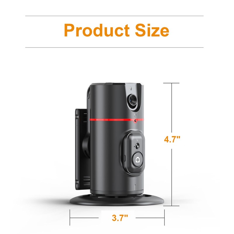 - Smart Tracking Tripod for 360°Surround Shooting. Our auto face tracking tripod adopts an AI intelligence computing system, which can automatically recognize and track your face or body (at a distance of 3.3-9.8ft), and rotate steadily by 360°with your movement. Free your hands for video calls and live streaming. Moreover, you can use the included wireless remote to connect with your phone for taking pictures or shooting video within 30ft)