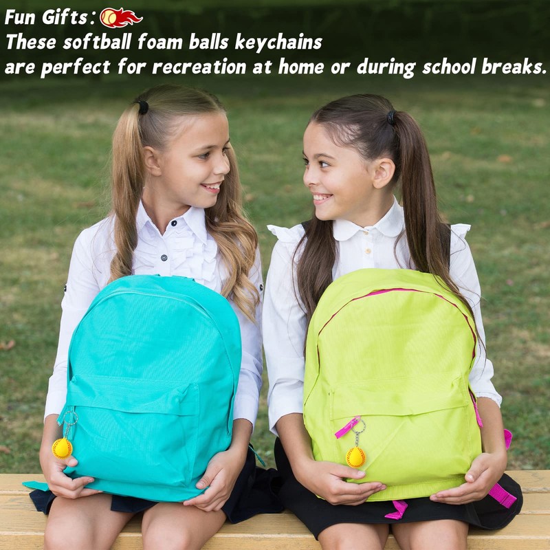 Funtery 24 Pack Softball Keychain Mini Foam Softball Keychain Softball Stress Ball Keychains Softball Gifts for Team Softball Party Favors Party Bag Gift Fillers(Softball)