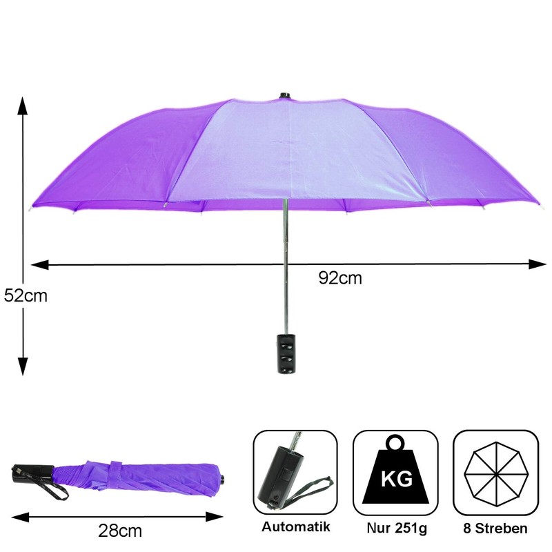 FunTomia Umbrella Automatic Pocket Umbrella 92 x 52 cm Stable Windproof Men Women Child Colour Purple, purple
