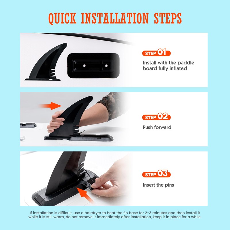 - 【Fin Upgrade】Our paddle boards are made with new upgraded fins, developed by our independently designed mould. Our fins install more smoothly and won't get stuck. The fins slide effortlessly into the fin base, making installation and removal easier and faster