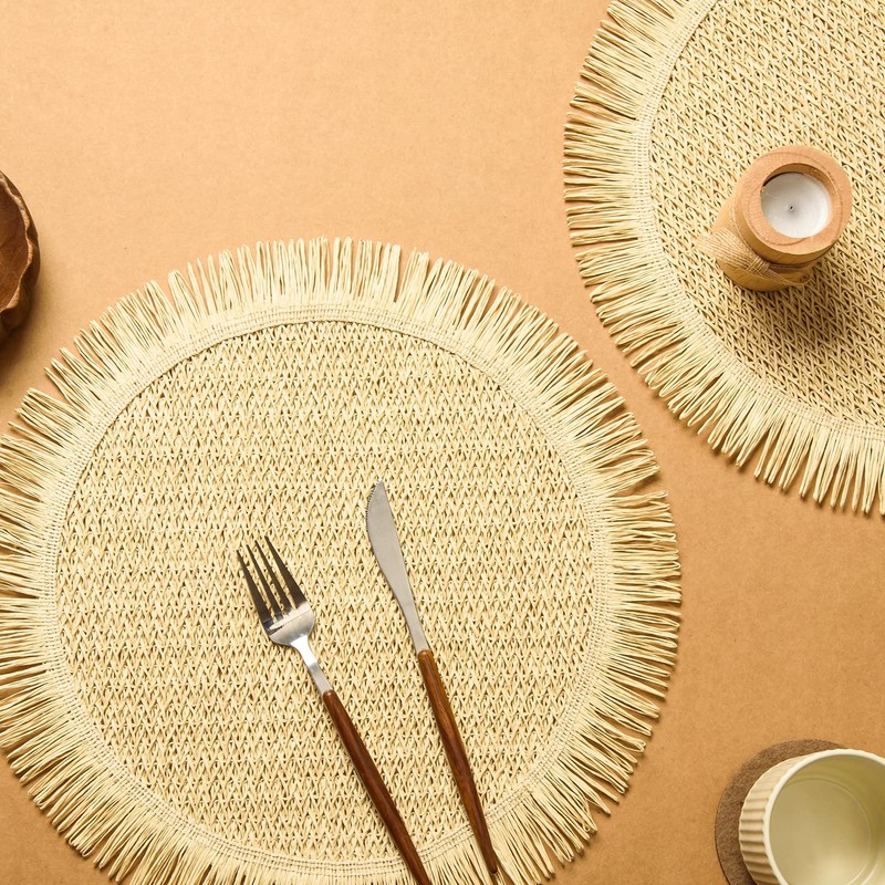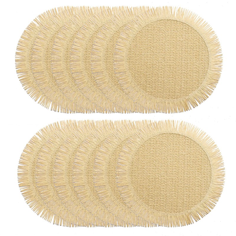 FunWheat Paper Round Placemats Set of 12 for Dining Tables 15 Inch Heat Resistant Table Mats Handmade Natural Place mats for Farmhouse Decoration(Beige)