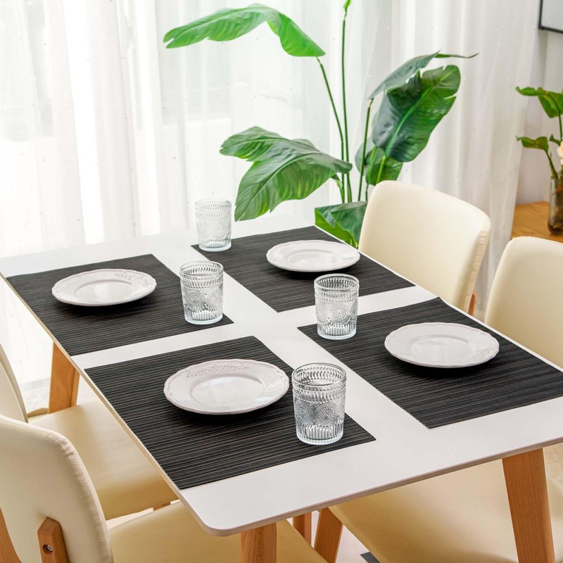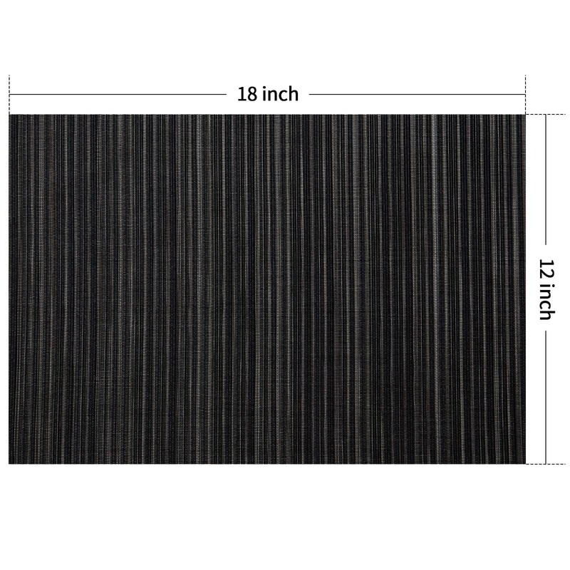 FunWheat Placemats Set of 6 Vinyl Washable Place Mats for Dining Table Durable Plastic Woven Table Mats 12inches x 18inches Easy Clean Indoor Outdoor Use (Rectangle Black)