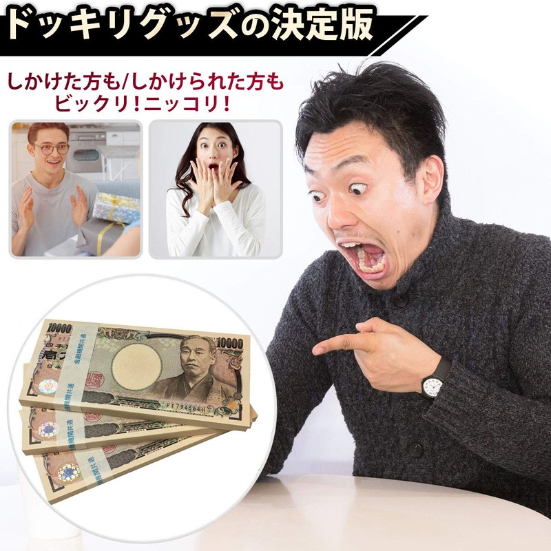 - You can make a dummy of 3 bundles of 100 sheets per bundle. Please prepare an authentic 10,000 yen bill. The possibilities are endless depending on your ideas, such as improving money, birthdays, giveaways, crime prevention, and other fun posts with SNS